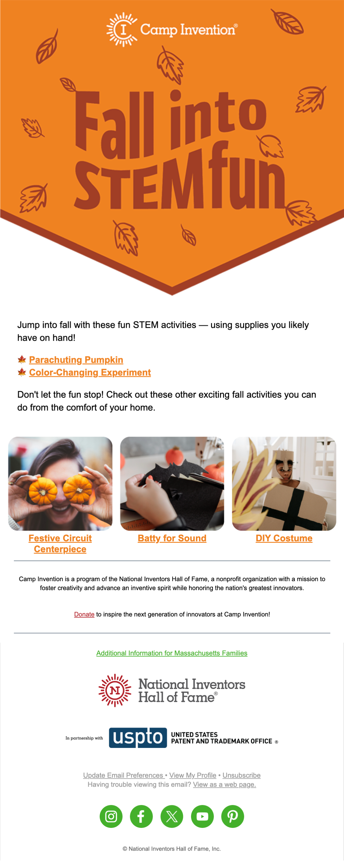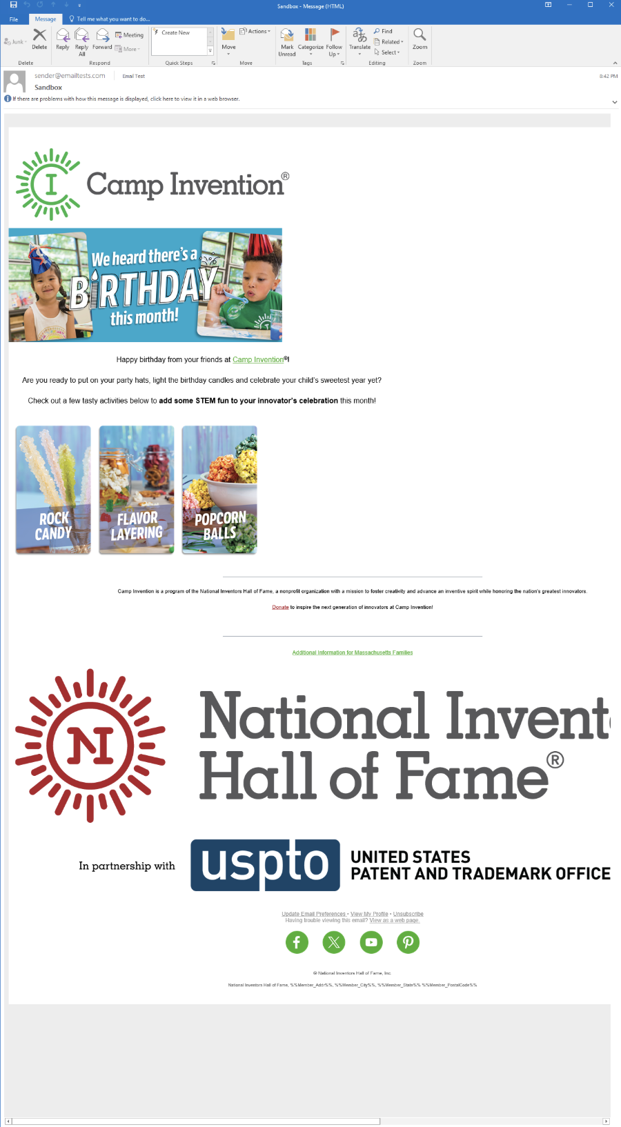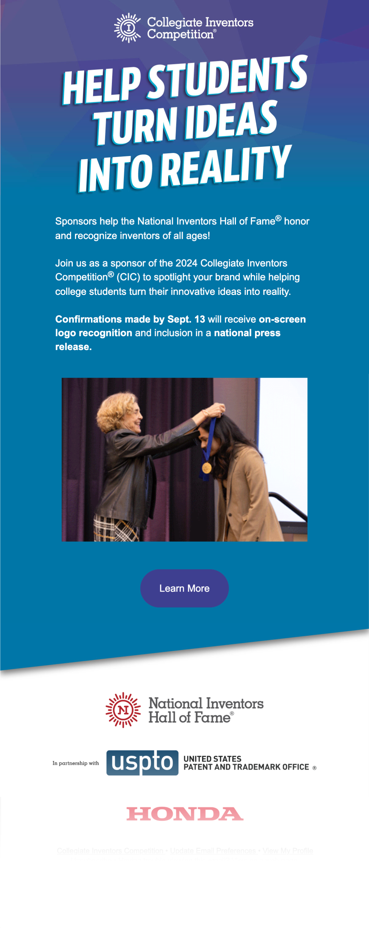 The National Inventors Hall of Fame’s e-mails were not displaying properly for their recipients, especially those who used Microsoft Office. This was due to outdated practices such as using images in place of live buttons, poorly formatted HTML, and no conditional formatting for MS Office.
